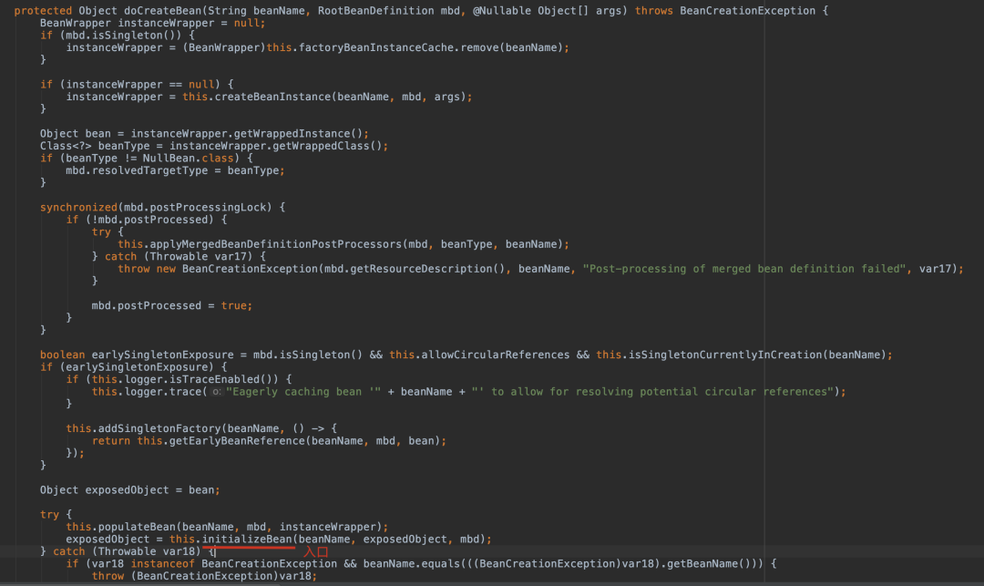 org.springframework.beans.factory.support.AbstractAutowireCapableBeanFactory#doCreateBean