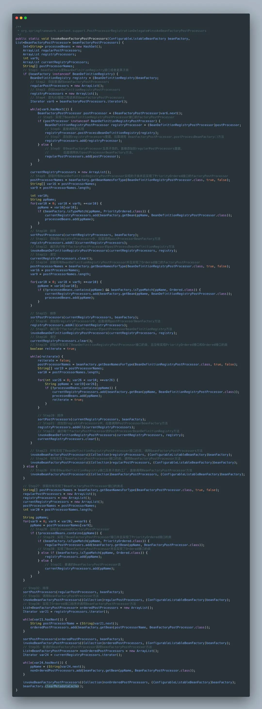 方法,这个方法处理的是 BeanFactoryPostProcessor