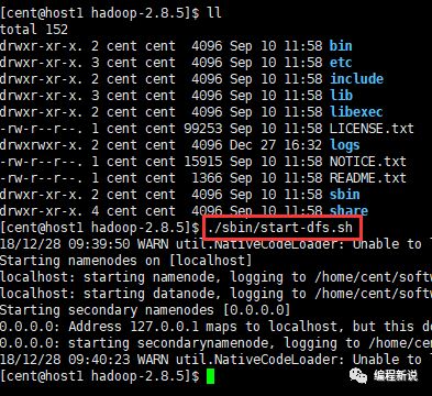 执行./bin/hdfs dfs -ls 命令,进到hdfs里看看,如图