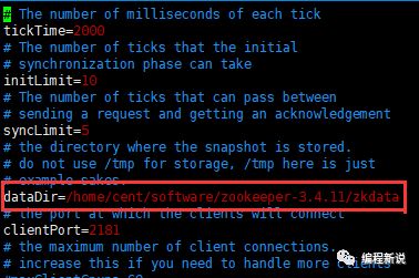 进入zookeeper解压目录,进入conf/zoo.cfg中设置下数据目录,如图