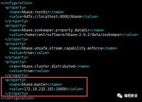 于是使用中文关键词进行了搜索,发现可以在hbase-site.xml配置文件中设置一个hbase.master的参数,赶紧加进去试试,如图: