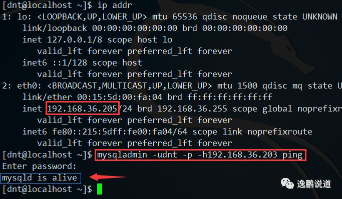 mysqladmin-u用户名-p-h服务器ip地址ping