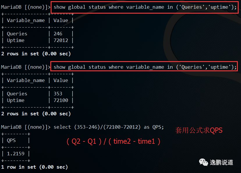 查询命令: showglobalstatuswherevariable_namein('Queries','uptime');