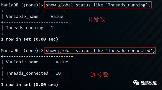 数据库当前并发数量:showglobalstatus like'Threads_running';