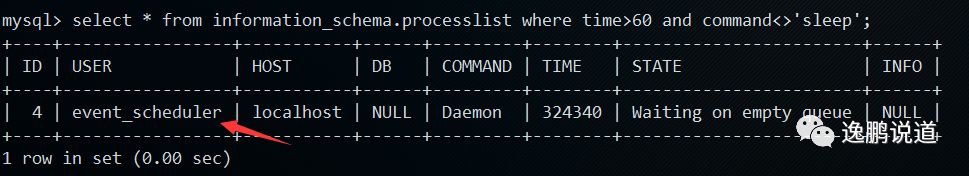 select*frominformation_schema.processlistwheretime>60andcommand<>'sleep';