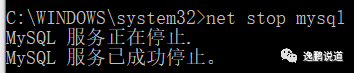 停止mysql服务:mysql stop mysql