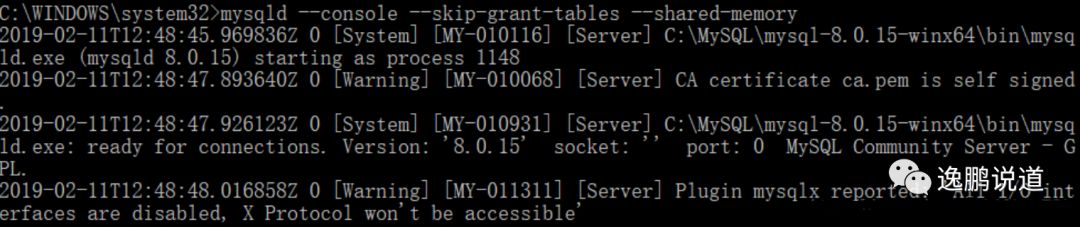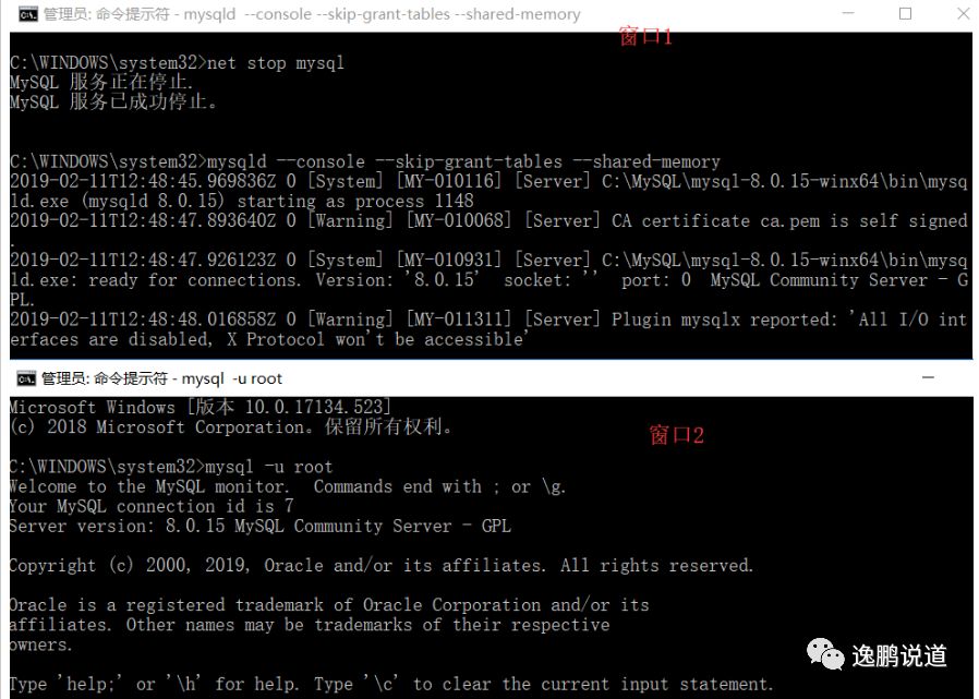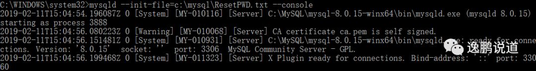 mysqld --init-file=c:\mysql\ResetPWD.txt --console,执行完毕后,关闭dos窗口