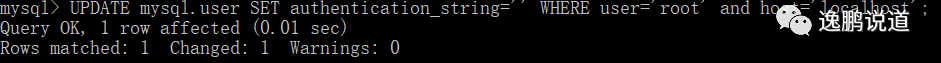 UPDATE user SET authentication_string='' WHERE user='root';