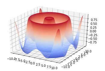 surf = ax.plot_surface(X, Y, Z, rstride=1, cstride=1, cmap=cm.coolwarm)