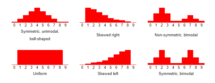 图形显示就像统计中的直方图一样,对于观察数据中的模式很有用。数据中的模式通常用中心、扩展、形状和不寻常的特征来描述。