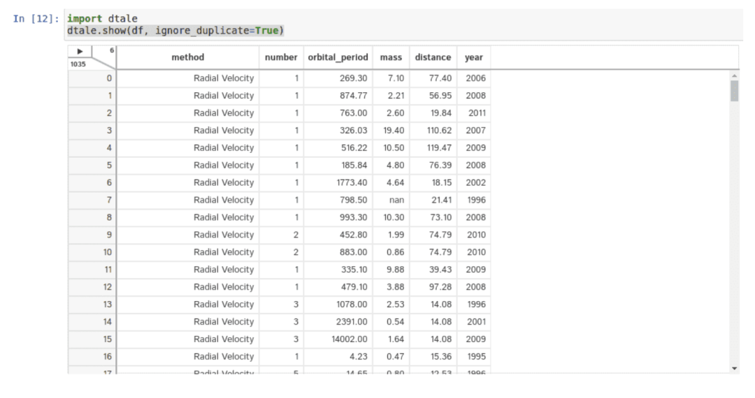 运行上述代码后,用户可以访问下面的交互式表以执行多个操作并可视化数据集。