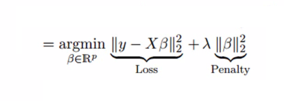 这个公式有两个组成部分,第一个是最小二乘项,第二个是相关系数β平方和的λ倍,把它添加到最小二乘项以缩小参数,从而得到一个非常低的方差。