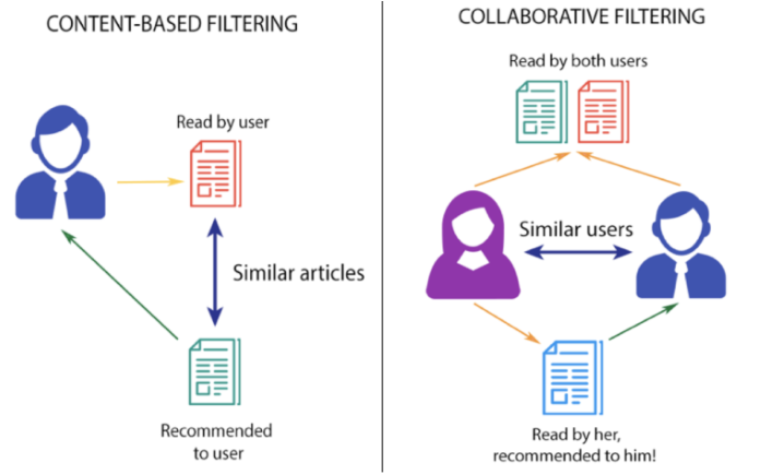例如,如果用户喜欢《威望》等电影,那么我们可以向他推荐《克里斯蒂安·贝尔》的电影或类型为《惊悚》的电影,甚至是《克里斯托弗·诺兰》导演的电影。推荐系统检查用户过去的喜好并找到电影“ The Prestige”,然后尝试使用数据库中可用的信息(例如主角,导演,电影类型,制作公司,等,并根据此信息找到与“ The Prestige”相似的电影。