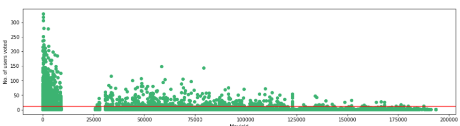 no_user_voted = ratings.groupby('movieId')['rating'].agg('count')no_movies_voted = ratings.groupby('userId')['rating'].agg('count')