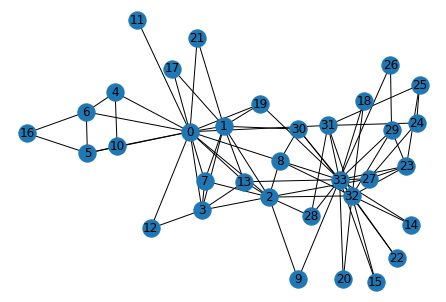 我们将使用Zachary的空手道俱乐部图来演示如何使用Girvan Newman算法实现社区发现。扎卡里的空手道俱乐部是一个大学空手道俱乐部的社交网络,在2002年被Michelle Girvan和Mark Newman使用后,该网络成为网络中社区结构的一个流行示例。