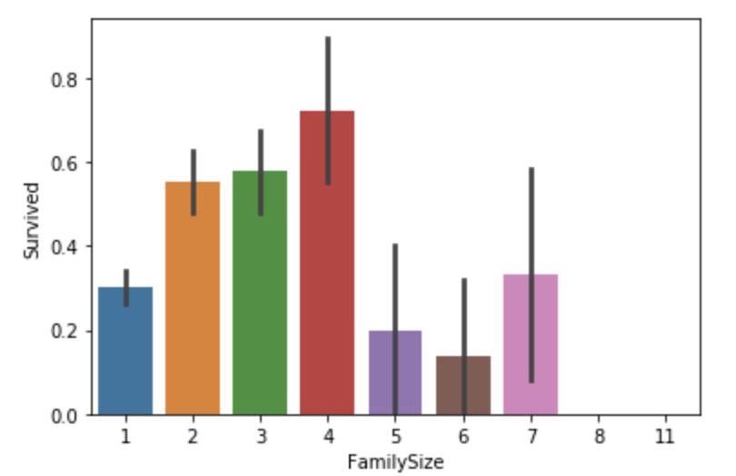 按生存率把FamilySize分为三类,构成FamilyLabel特征。