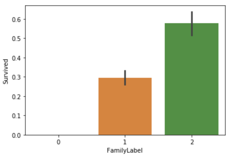 def SizeToLabel(s):if (s>=2)&(s<=4):return 2elif((s>=5)&(s<=7))|(s == 1):return 1elif(s>7):return 0all_data["FamilyLabel"] = all_data["FamilySize"].apply(SizeToLabel)sns.barplot(x="FamilyLabel", y="Survived", data=all_data)
