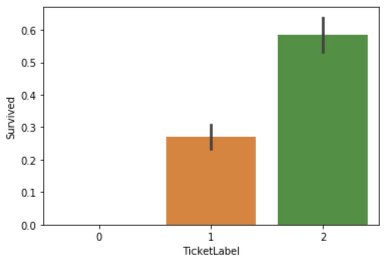 def GroupToLabel(s):if(s>=2)&(s<=4):return 2elif((s>=5)&(s<=8))|(s==1):return 1elif(s>8):return 0all_data["TicketLabel"] = all_data["TicketGroup"].apply(GroupToLabel)sns.barplot(x="TicketLabel",y="Survived",data=all_data)