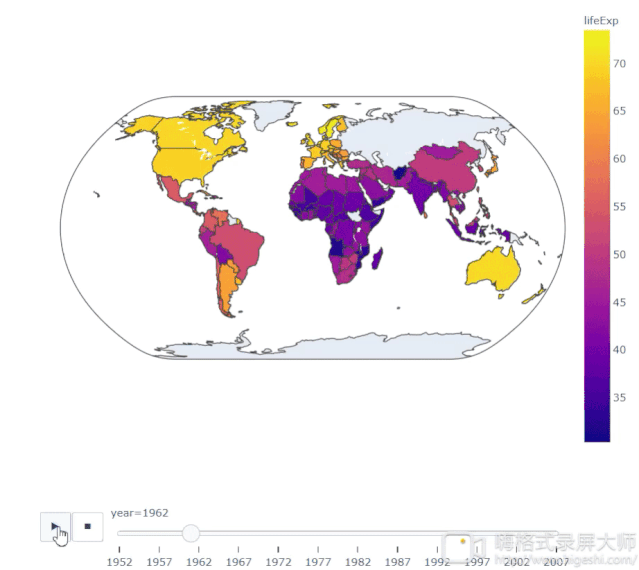 最后,我们要了解plotly.Express流行的参数——动画。该参数animation_frame 指向用于区分动画帧的列。您必须稍微更新数据集才能创建此动画。列years_upto包含所有历史数据。详细数据如下图所示。