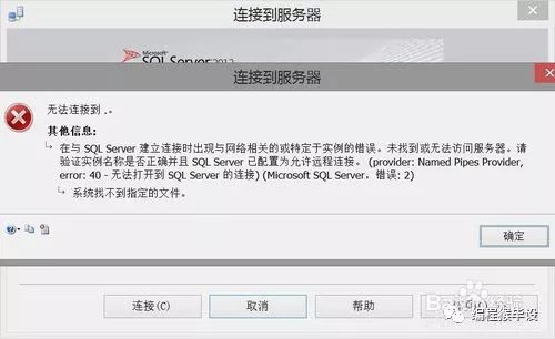 1、当SQL SERVER服务没有开启时,SQL SERVER管理器连接不上数据库服务,会出现如下提示