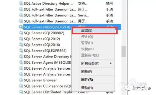 2.如果不确定安装的是什么实例的SQL,将服务中所有名称带SQL Server的服务都开启即可。