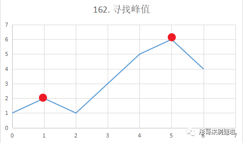 解释:你的函数可以返回索引 1,其峰值元素为 2;或者返回索引 5, 其峰值元素为 6。
