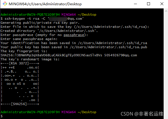 3.1 打开本地git bash,使用如下命令生成ssh公钥和私钥对