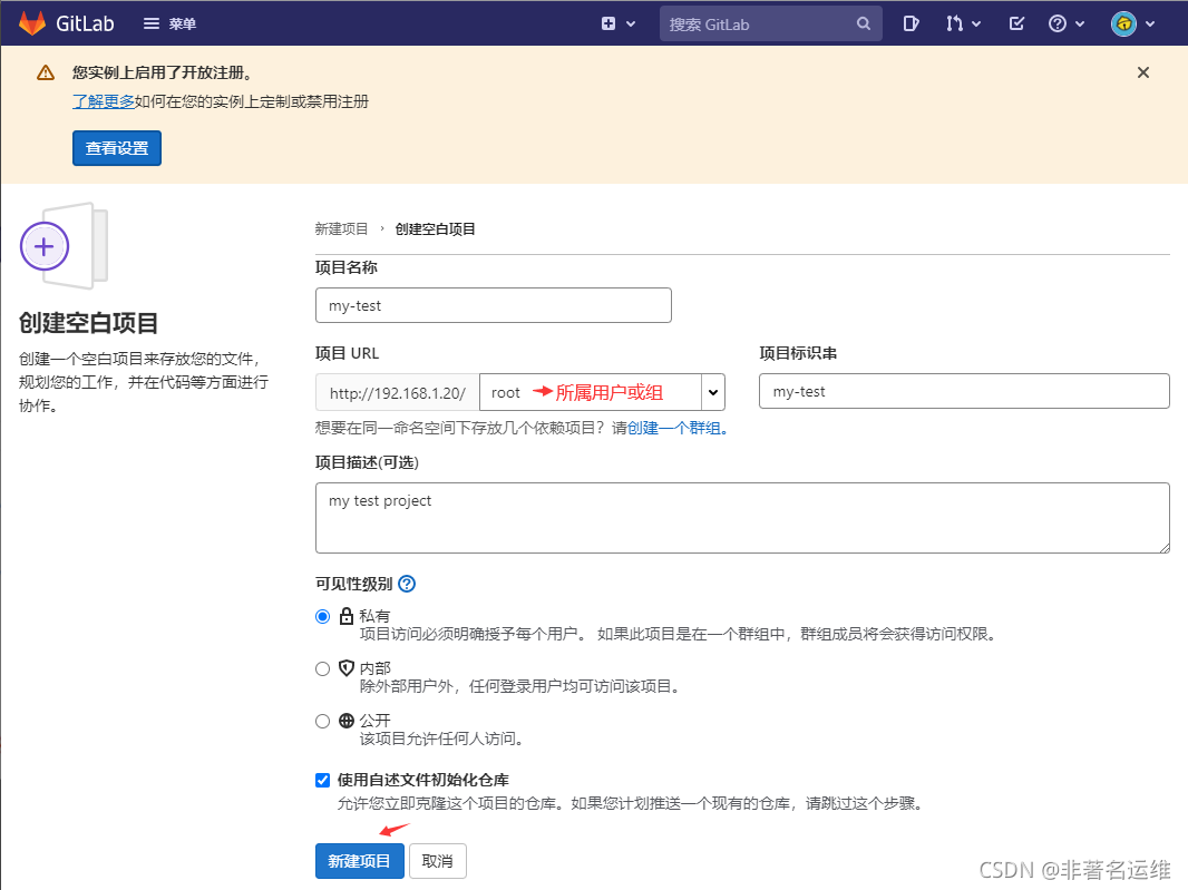 2核+CPU,4GB+内存(Gitlab低于4G内存会报502错误)