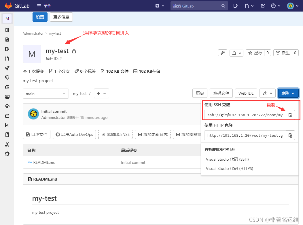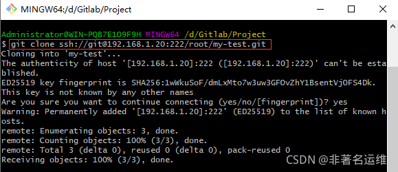 4.6 进入Projects文件夹,可以看到my-test项目已经克隆到本地了