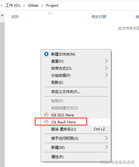 5.2 查看仓库当前的状态,显示有变更的文件,在项目文件夹中右键选择->Git Bash Here