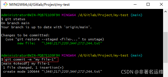 然后输入以下命令提交至本地仓库并添加提交备注信息