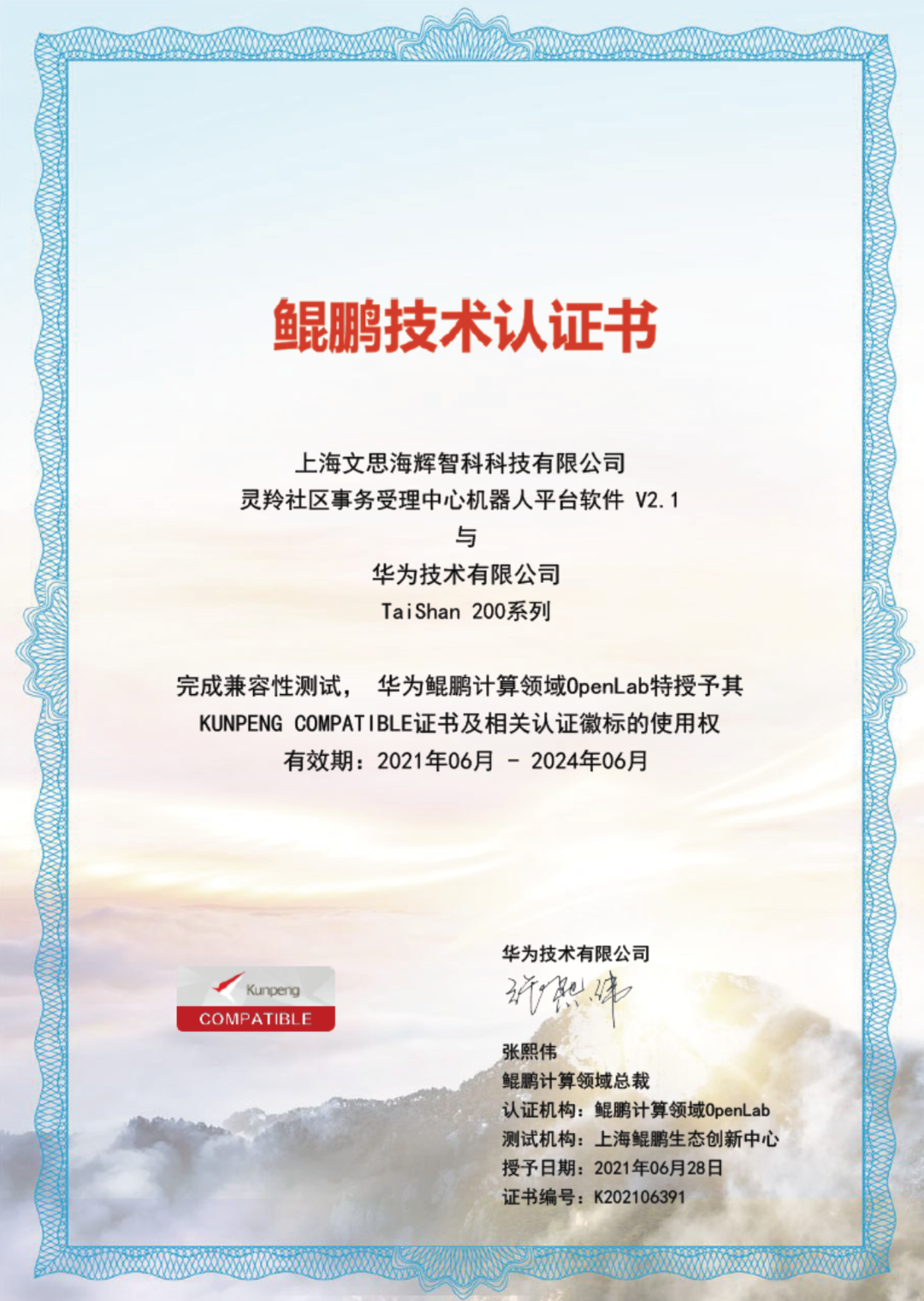 第一批华为鲲鹏优秀生态合作伙伴企业名单及商用方案证书展示,如下所示: