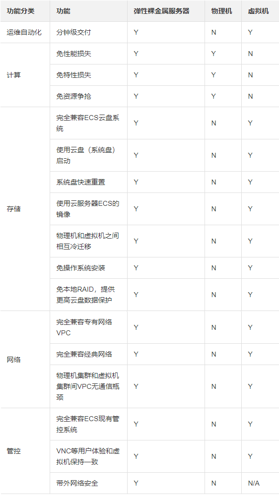 阿里云的一张图,可以看到裸金属、物理机、虚拟机三者之间的各种比对,更加深对裸金属的认识,