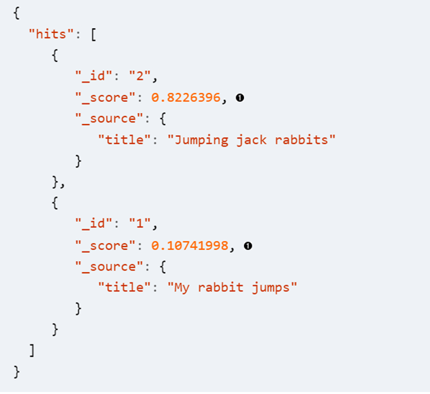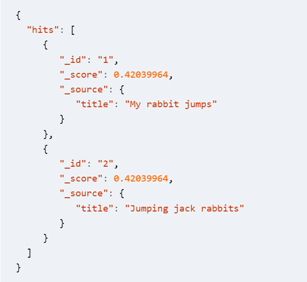 这个时候假如我们搜索jumpingrabbits,对于english的analyzer来说,jumping最终会变成jump,rabbits也会变成rabbit,所以两个文本的得分是一样: