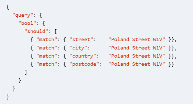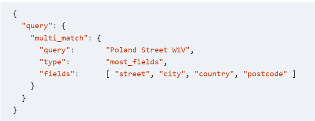 这个时候你可能会搜索“Poland Street London”,也就是说我们会把多个域组合在一起,那这个时候我们怎么来进行查询呢?