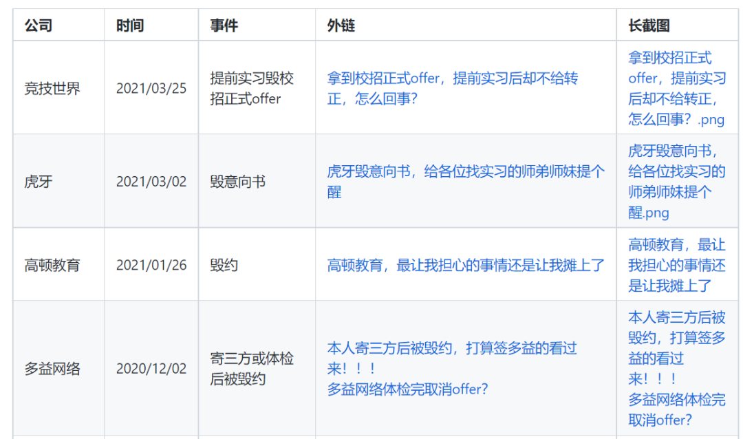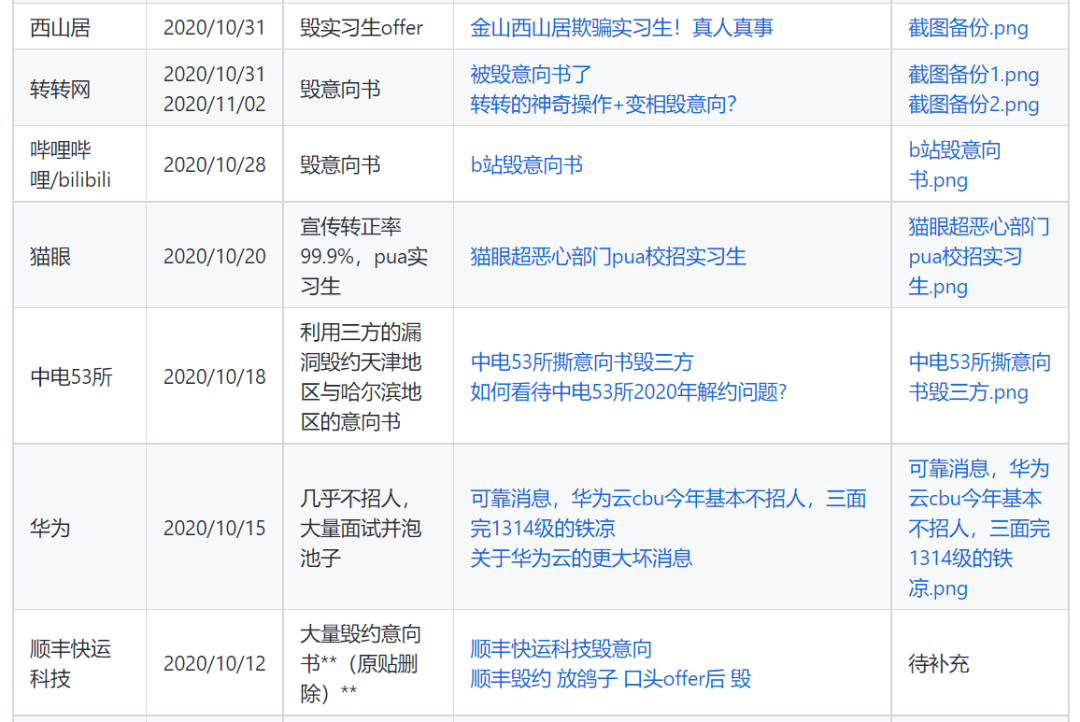 本仓库的设立旨在帮助正在进行校招或者即将参加校招的同学们提供一个参考以避雷,并不是说这些公司就再也不能投了,但是具有污点的公司仍然要被钉在校招的耻辱柱上,让他们知道所谓的弱势群体也不是一盘散沙。