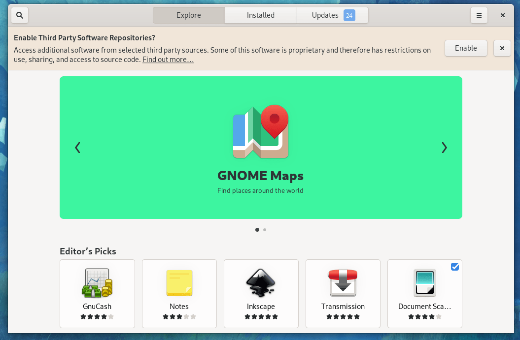 尽管你可以 在 Fedora 中启用第三方软件库,但这又是一个额外的步骤。而且,RPM Fusion 存储库可能没有 Ubuntu 的 universe 存储库那么庞大。