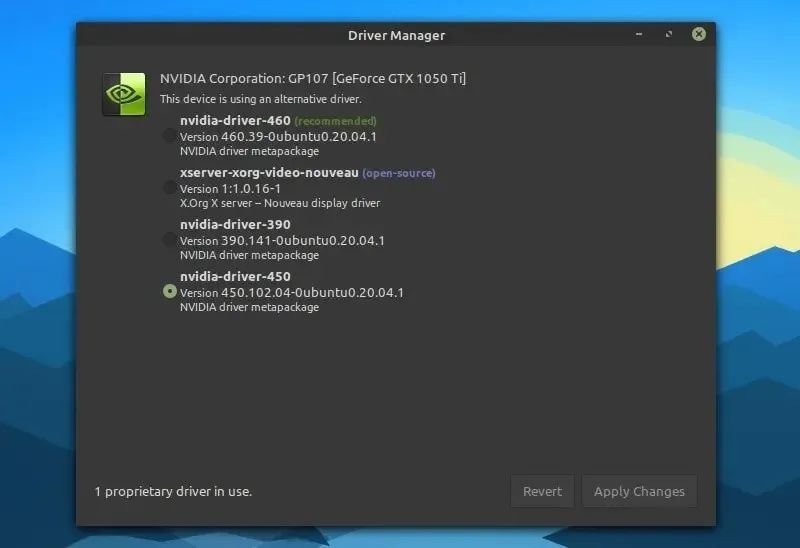 而且,当我启动 Linux Mint 时,使用“驱动程序管理器”应用程序,安装驱动程序相当容易。