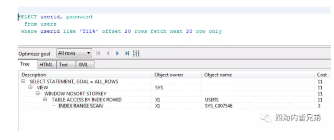 where userid like 'T11%' offset 20 rows fetch next 20 row only