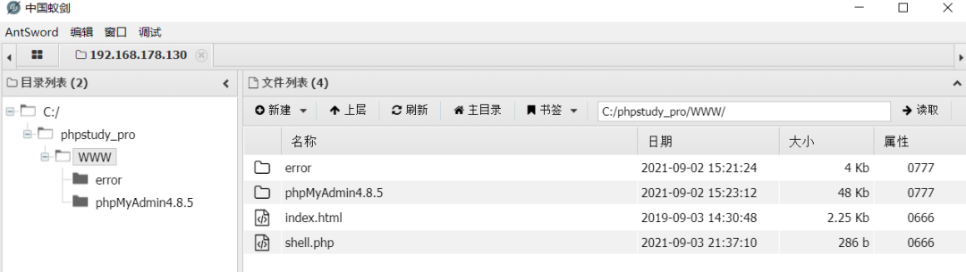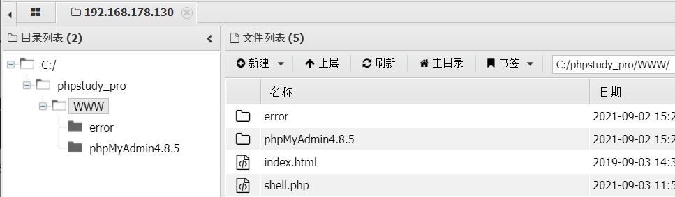 这里是用phpstudy搭建的网站,所以猜测网站目录在WWW目录下,或者通过其他手段的信息收集,来收集到我们的网站绝对路径。