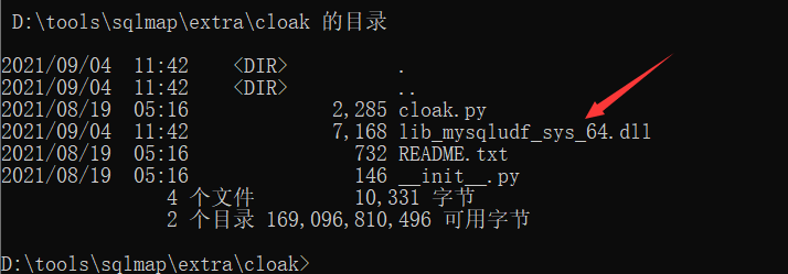#cloak位置D:\tools\sqlmap\extra\cloak#解码操作D:\tools\sqlmap\extra\cloak>python cloak.py -d -i d:\tools\sqlmap\data\udf\mysql\windows\64\lib_mysqludf_sys.dll_ -o lib_mysqludf_sys_64.dll #windows解码D:\tools\sqlmap\extra\cloak>python cloak.py -d -i d:\tools\sqlmap\data\udf\mysql\linux\64\lib_mysqludf_sys.so_ -o lib_mysqludf_sys_64.so #linux解码