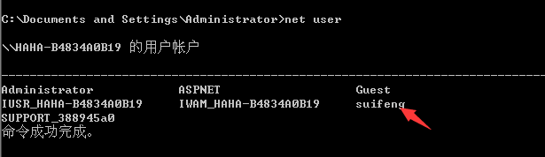 然后等待五秒后用net user命令可以看到创建的用户