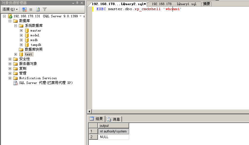 在打开了xp_cmdshell之后,我们就可以进行执行命令了