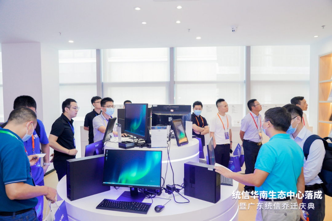 来自广东省、广州市、黄埔区各级政府领导、工信部五所、广东软件行业协会、广东省信息协会、广东省电子政务协会、广东省电子信息行业协会、广州市信创联盟、广州市软件行业协会、芯片、设备整机、数据库、中间件、应用软件等重点合作伙伴120余人莅临现场,共同见证统信华南生态中心落成和广东统信乔迁典礼。