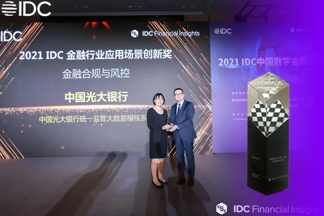 2021年9月,在IDC中国举办的2021 IDC中国数字金融论坛上,中国光大银行统一监管大数据稽核系统荣获“金融行业应用场景创新奖”。