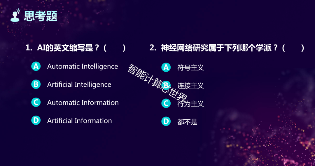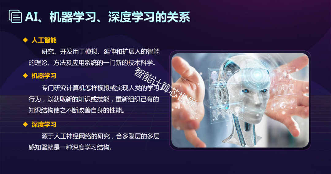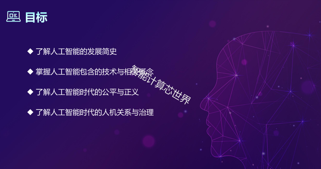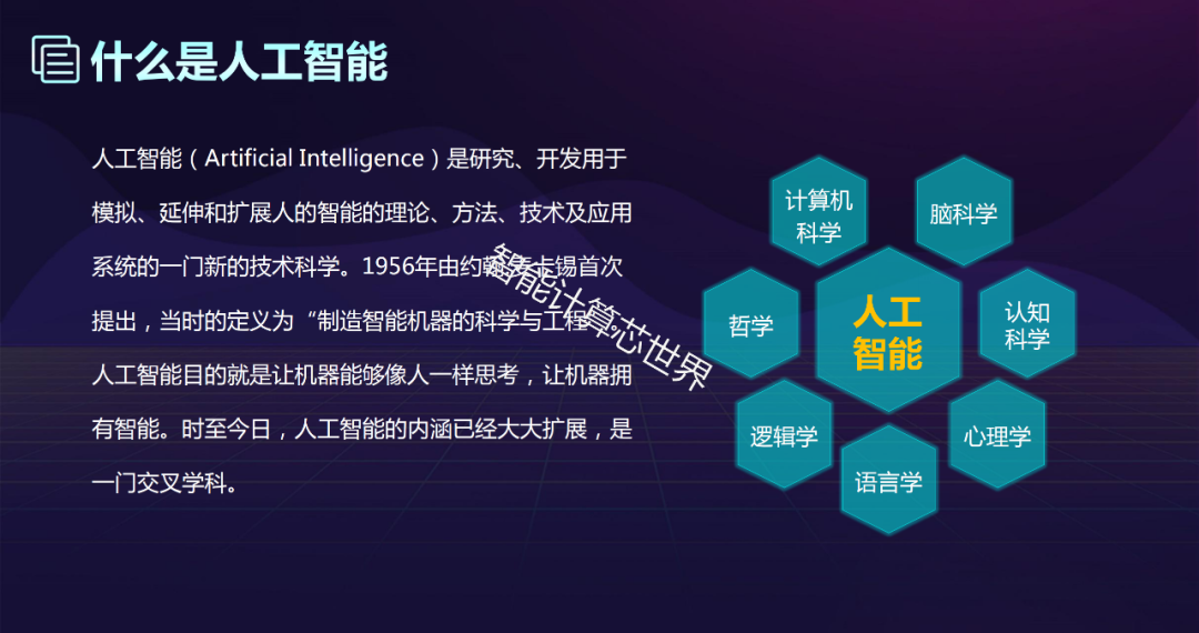 人工智能是研究、开发用于模拟、延伸和扩展人的智能的理论、方法、技术及应用系统的一门新的技术科学。人工智能目的就是让机器能够像人一样思考,让机器拥有智能。时至今日,人工智能的内涵已经大大扩展,是一门交叉学科。