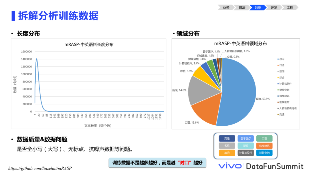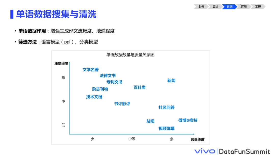 介绍完模型侧,接下来看看数据。众所周知,数据的质量基本决定了模型翻译效果的上限。