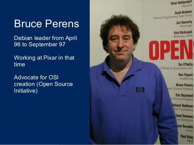 Eric Steven Raymond(以姓名缩写 ESR 作为黑客代号)是开放源代码运动的主要领导者之一,同时也是 OSI 的核心创办人,他撰写的《大教堂与市集》被认为是“开源圣经”,其另一部作品《Unix 编程艺术》也是一本经典著作。ESR 的名言“足够多的眼睛,就可让所有问题浮现” (Given enough eyeballs, all bugs are shallow),对开放源代码运动影响很大,这亦即著名的林纳斯定律 (Linus' Law),含义是软件开发测试人员数量对软件开发质量意义重大。4、Bruce Perens